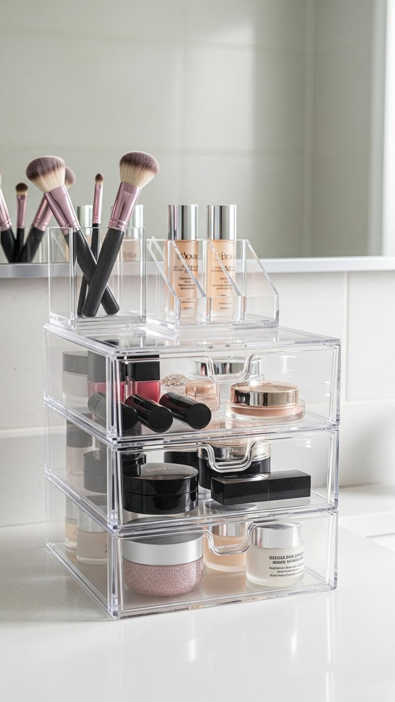 Acrylic storage feels invisible in the best way. I use it when I want organization without visual noise. Everything stays neat, and nothing competes for attention.