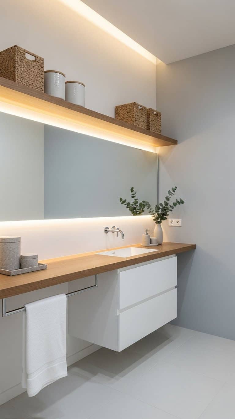 Floating shelf storage containers feel clean, modern, and intentional. I love how they free up counter space while keeping essentials within reach. They’re especially useful in small bathrooms where every inch matters.