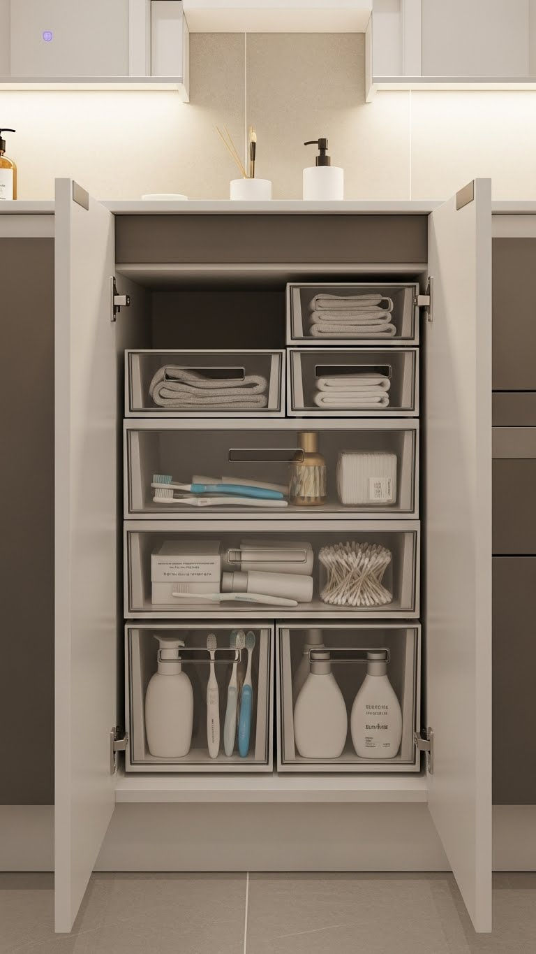 Stackable plastic drawers are the unsung heroes of bathroom organization. They’re not flashy, but wow, they get the job done. I’ve used these inside vanities and linen closets, and they instantly double your storage space.
